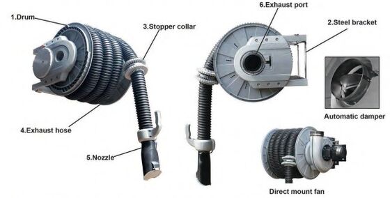 Ευέλικτες Επιλογές Τοποθέτησης:Αυτή η "τροχαλία εξαγωγής εξατμίσεων" μπορεί να τοποθετηθεί με ασφάλεια σε τοίχους, οροφές ή δάπεδα ανάλογα με τη διάταξη της εγκατάστασής σας. Η τοποθέτηση στην οροφή είναι ιδιαίτερα αποτελεσματική για να διατηρούνται οι εύκαμπτοι σωλήνες ανυψωμένοι και εκτός δρόμου, βελτιστοποιώντας τον πολύτιμο χώρο του δαπέδου, ενώ παρέχει εξαιρετική κάλυψη για πολλαπλά σημεία σέρβις.