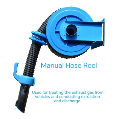 ES07 is manual spring unwind and return hose reel. Simply pull down the hose to the desired length and attach the exhaust nozzle to the vehicle tailpipe. After successfully removing car exhaust gas (fume) from your space, the hose easily retracts back into the reel.