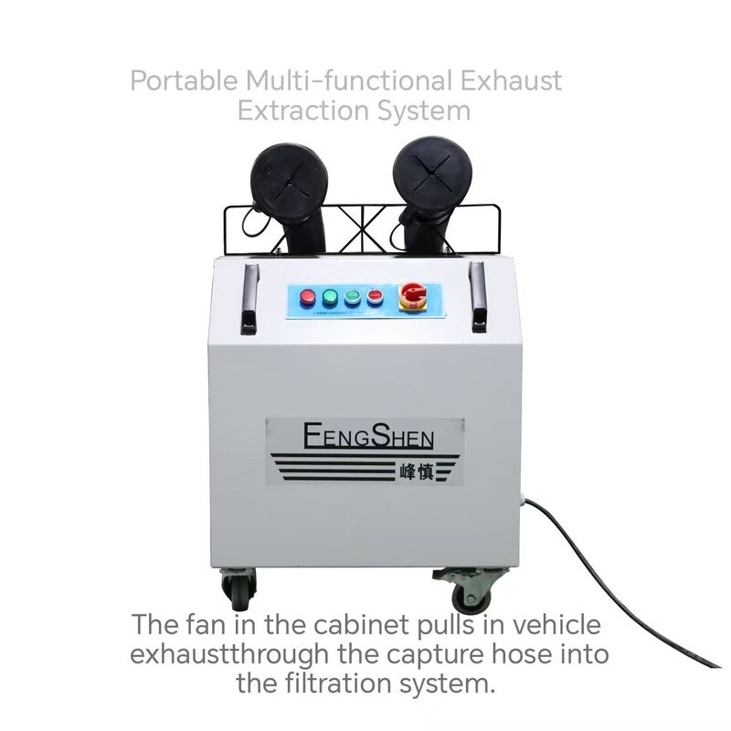 The Fengshen Portable DPF & Activated Carbon Exhaust Extractor is a professional-grade, semi-automatic mobile purification system designed for the safe indoor operation of diesel and petrol engines. This advanced unit directly tackles the two primary components of harmful vehicle exhaust: solid particulate matter (soot) and toxic gases. By integrating a Diesel Particulate Filter (DPF) with an Activated Carbon stage, it captures soot and adsorbs harmful vapors, allowing for engine diagnostics, repairs, and warm-ups in workshops, fire stations, and private garages. It provides a critical mobile solution where a fixed Sliding Rail Trolley extraction system is not applicable or needs to be supplemented for specialized tasks.