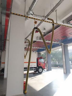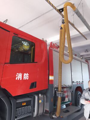 One end is connected to the fire engine, and the other end is connected to the exhaust gas extraction system. When the fire engine approaches the exhaust extraction system, the two ends will automatically connect and start extracting and discharging the exhaust gas.