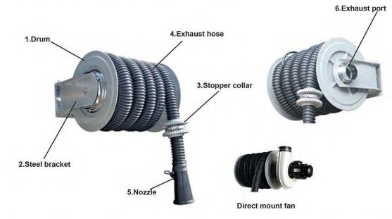 Versatile Mounting & Configuration: This exhaust hose reel can be easily mounted on walls, ceilings, or floors to optimize workshop space . It is designed for integration with fixed central exhaust systems or can be configured with dedicated extraction fans for stand-alone operation.